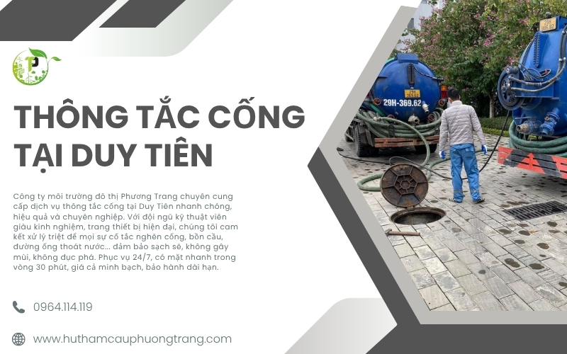 Duy Tiên, một khu vực đang phát triển năng động tại Hà Nam, nhu cầu về các dịch vụ vệ sinh môi trường, đặc biệt là thông tắc cống, ngày càng trở nên cấp thiết. Một hệ thống cống rãnh thông thoáng không chỉ đảm bảo vệ sinh, sức khỏe mà còn góp phần vào chất lượng cuộc sống chung. Bài viết này tổng hợp những thông tin chi tiết nhất về các dịch vụ thông tắc cống tại Duy Tiên, giúp bạn dễ dàng tìm được lựa chọn phù hợp, hiệu quả và đáng tin cậy. Thông tin được tổng hợp từ các nguồn uy tín như Google Maps, Facebook và trải nghiệm thực tế từ Dịch Vụ Môi Trường Sạch. Để biết thêm chi tiết và đặt lịch, hãy truy cập Dịch Vụ Môi Trường Sạch.